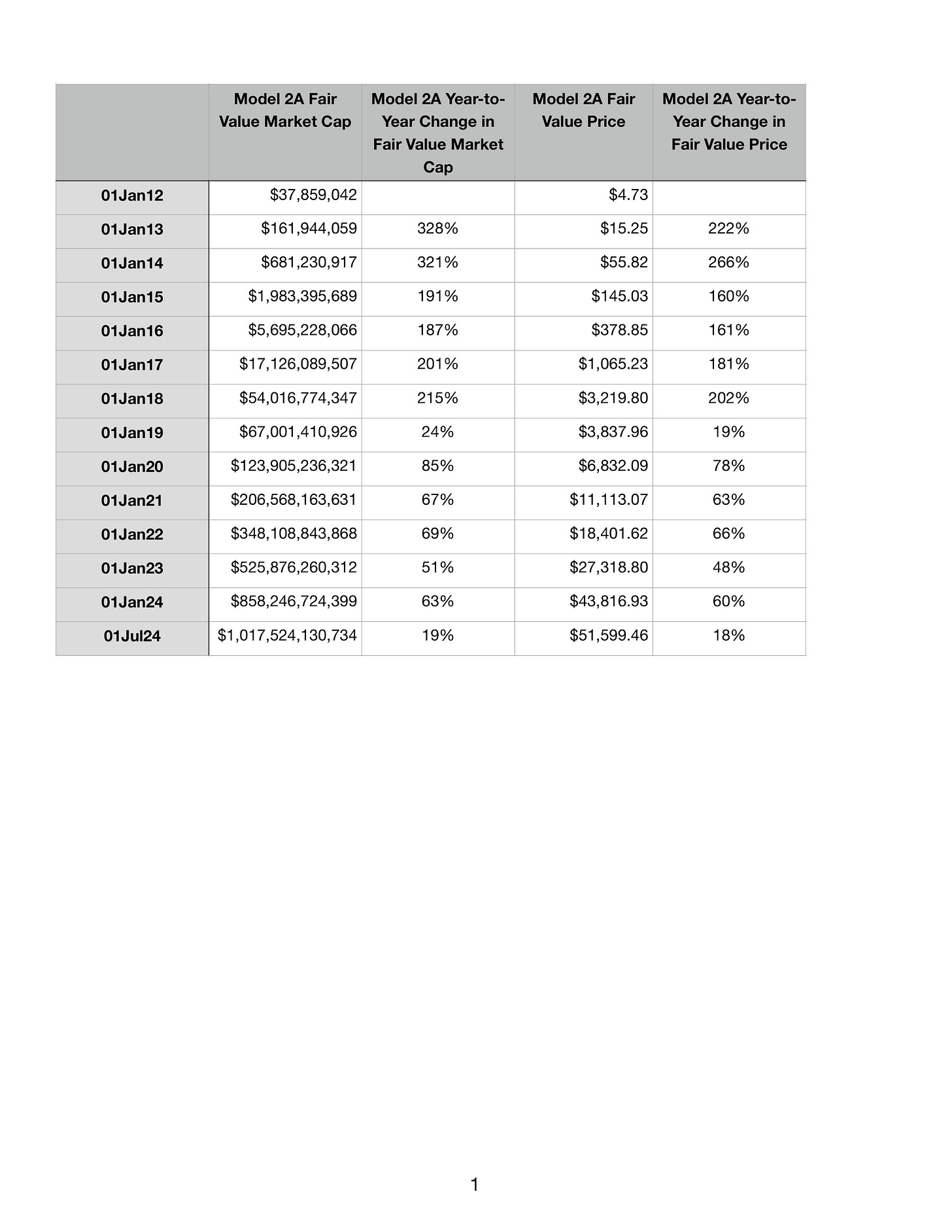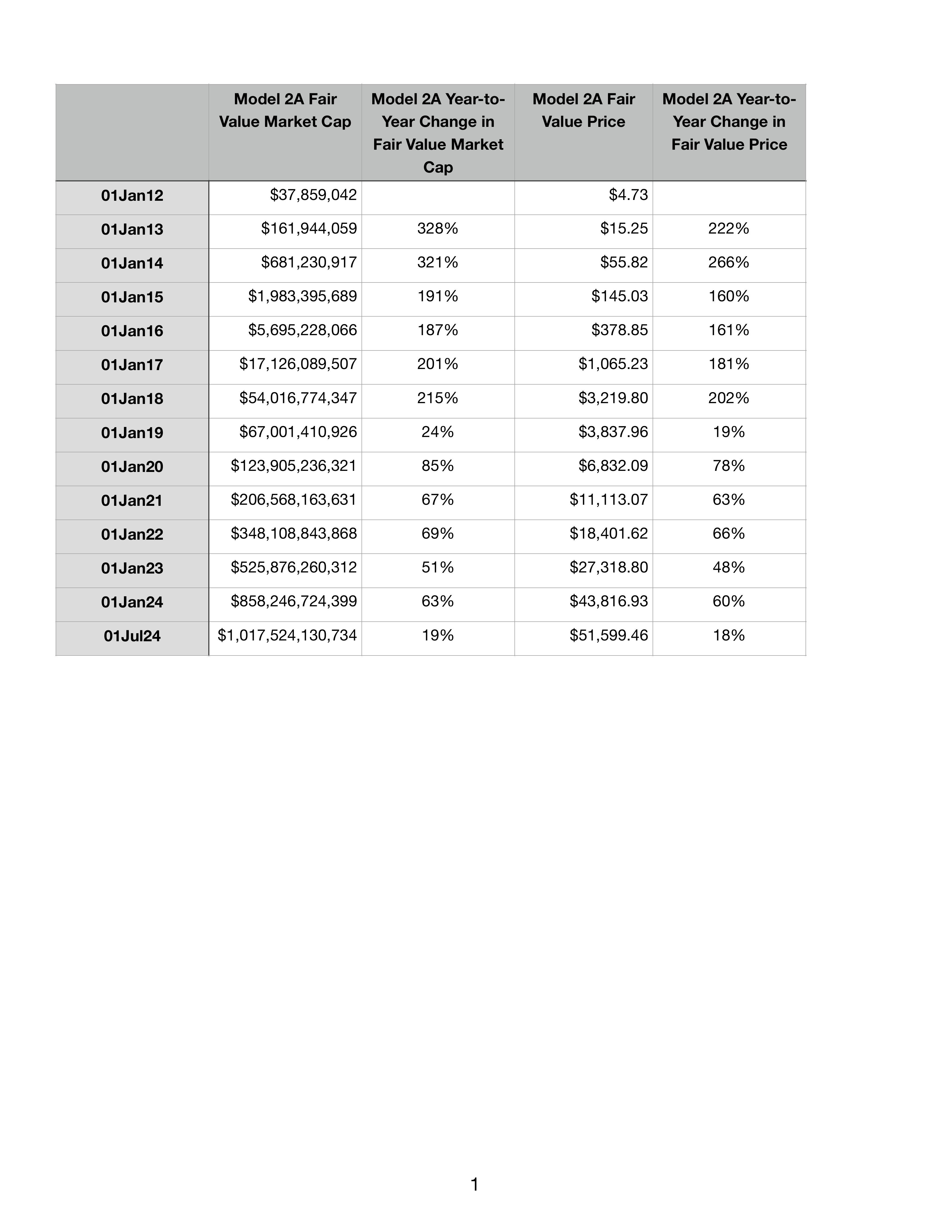 During that transition period, the Model 2 plot of ln(V/N) retained its linearity in both the SRET model and Power Law model formats (Fig 11.5 and 11.6), providing an accurate calculation of the changing fair value market cap during the transition period.
